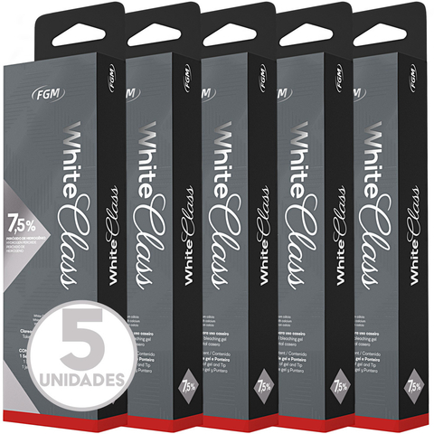 5 Seringas gel clareador contendo 7,5% com 3g. cada.